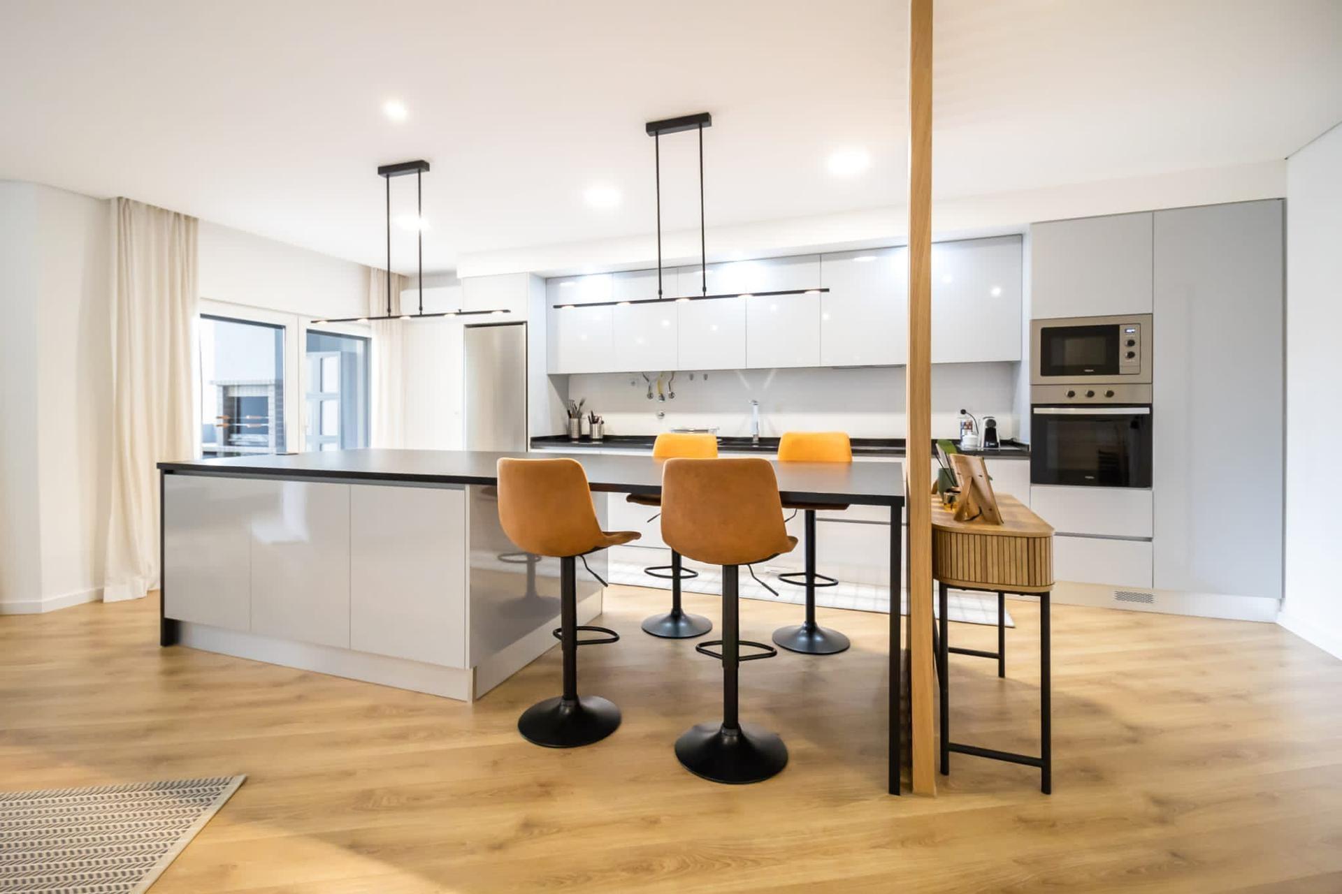 Remodelação da parte social do apartamento, cozinha e sala pensados ao pormenor, um espaço open space que promove o convívio e vai de encontro às necessidades e ao dia-a-dia dos nossos clientes.