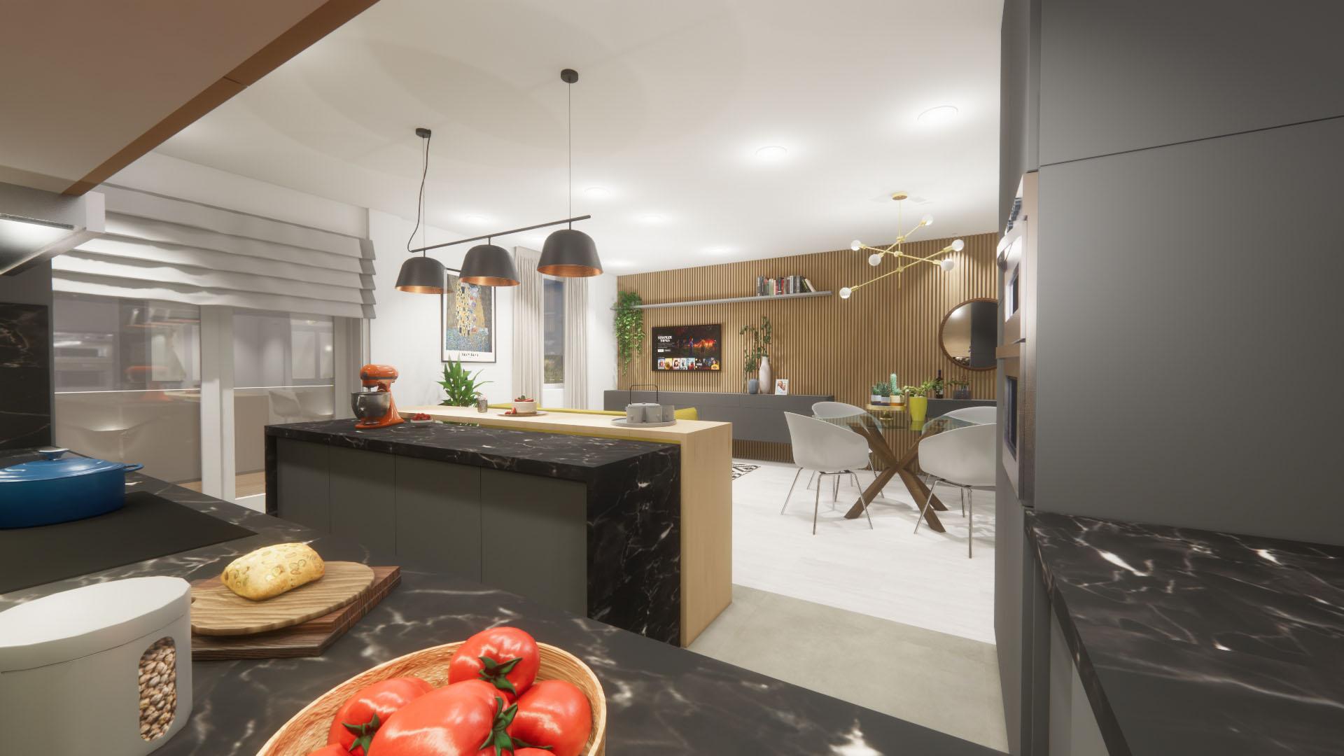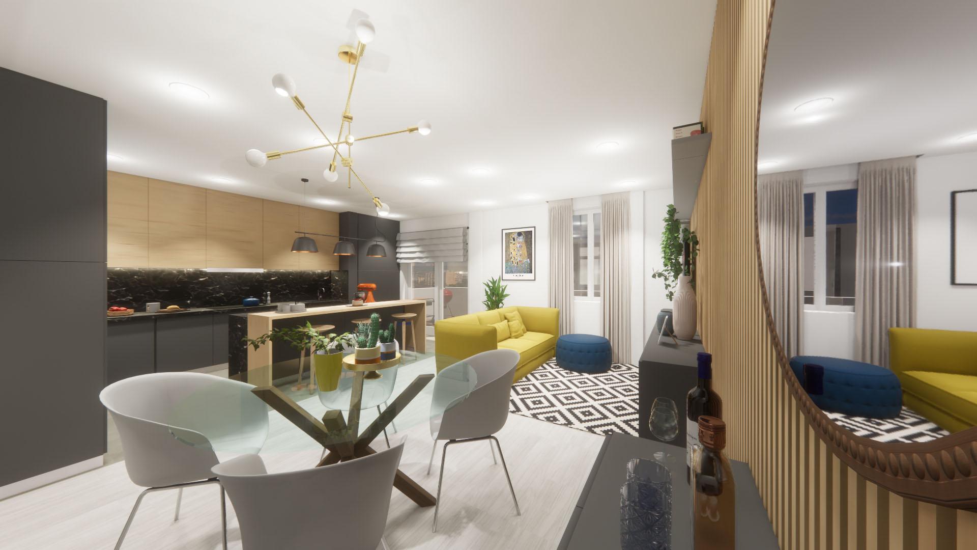 Projeto de remodelação total num apartamento T4, que tinha muitas divisórias tornando o apartamento muito escuro. Optamos por unir a sala com a cozinha criando um open space, dando uma maior amplitude ao entrar no apartamento e mais luminosidade.