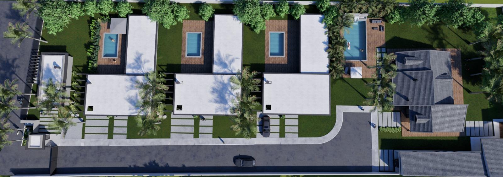 Implantado num terreno com 5.000m2, este projeto partiu da junção de dois terrenos para se projetar um condomínio em propriedade horizontal, destinado ao uso habitacional, com remodelação total de uma moradia existente e três moradias de raiz.
